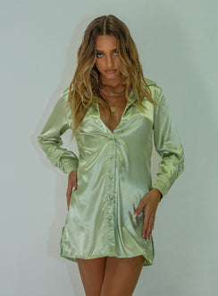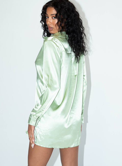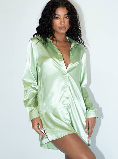 90210 Satin Shirt Mini Dress Sage has a rating of 4.5 stars based on 18 reviews.