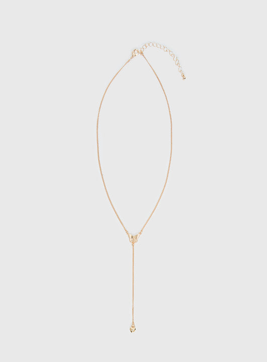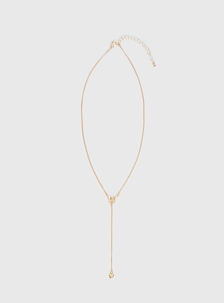 - Gold-toned hardware, butterfly & heart pendant, adjustable length, lobster clasp fastening