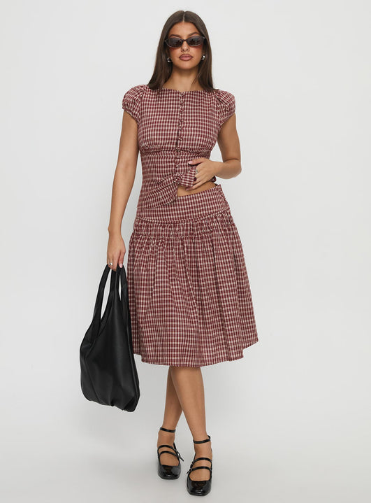 https://us.princesspolly.com/products/alixandra-ruched-midi-skirt-red-check