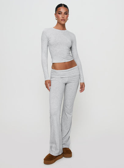 - Cropped top, round neckline, folded-over pants, elasticated waistband, flared hem, low-rise ift