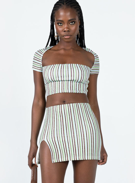 Anni Stripe Mini Skirt Multi has a rating of 3.9 stars based on 7 reviews.