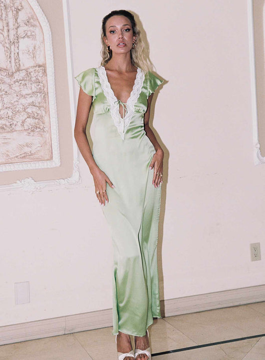 Armas Lace Trim Maxi Dress Green has a rating of 4.9 stars based on 13 reviews.