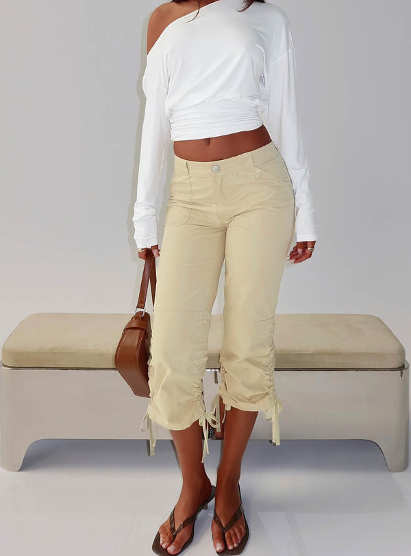 Ashlinn off shoulder long sleeve drapey top white