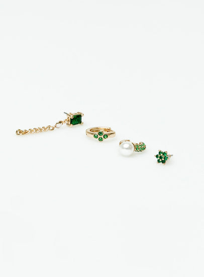 Earring pack Gold toned Stud and hoop fastening Gemstone detail