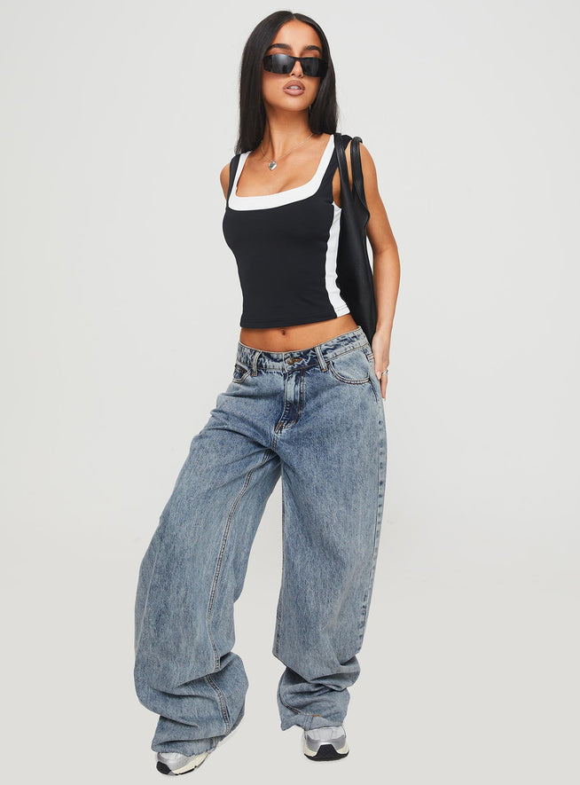 - Slim fitting, straight neckline, elasticated straps, contrast panel detail