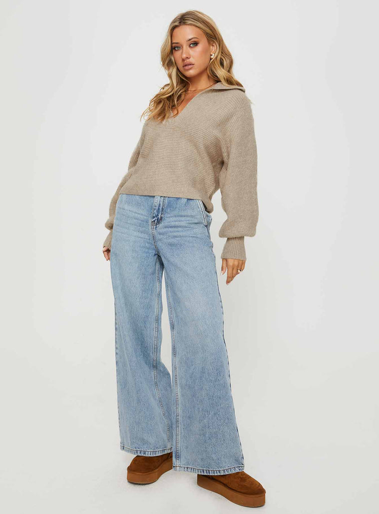 Bella notched neck sweater beige
