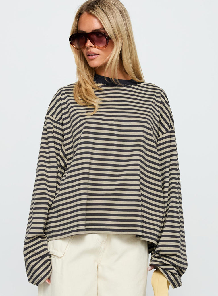 Bloom long sleeve top beige stripe