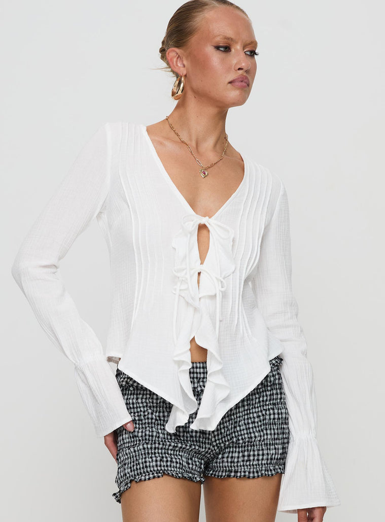 Bonheur ruffle long sleeve top white