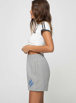 Princess Polly Track Shorts Cursive Text Grey / Blue