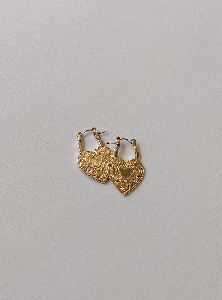Earrings Hoop style  Gold-toned Latch fastening  Heart design