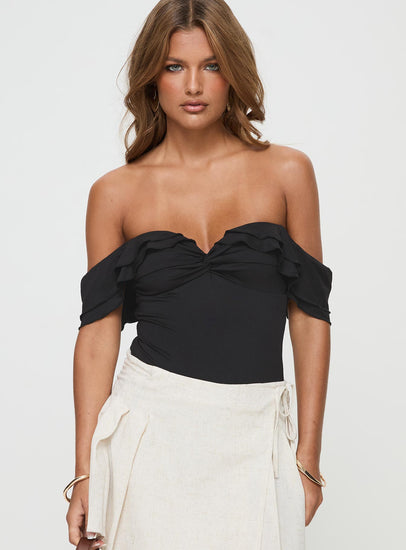 Coming Back Ruffle Bodysuit Black has a rating of 4 stars based on 6 reviews.