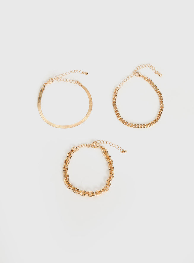 - Pack of three, gold-tone, lobster clasp fastening, adjustable length