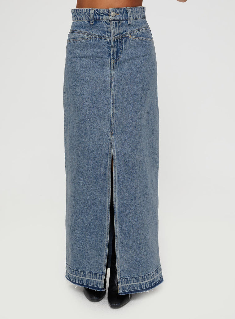 Deneuve Denim Maxi Skirt Mid Wash has a rating of 4.5 stars based on 17 reviews.