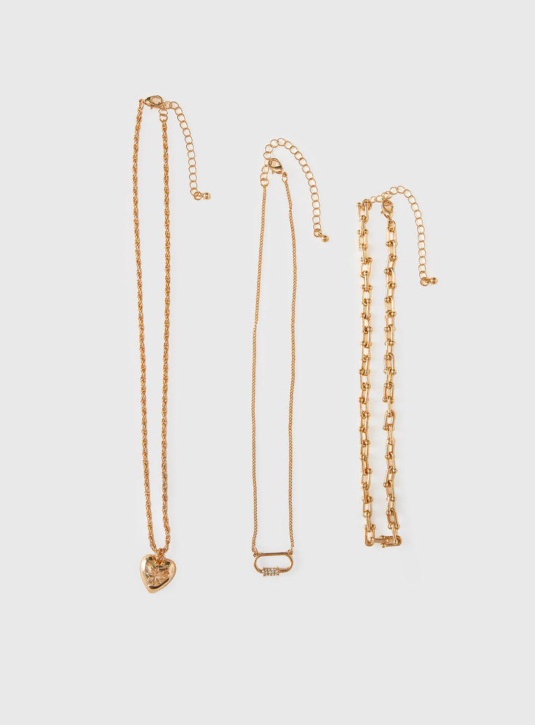 Double date layered necklace gold