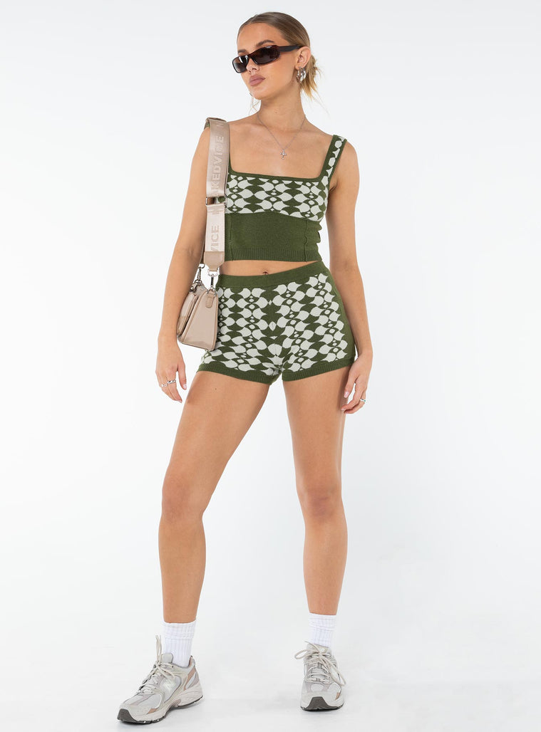 Elewa geo knit shorts sage / white
