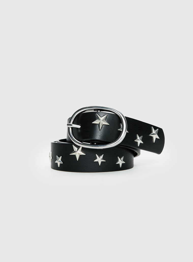 - Star pinned detail, silver-toned hardware, buckle closure, thick straps, adjustable length
