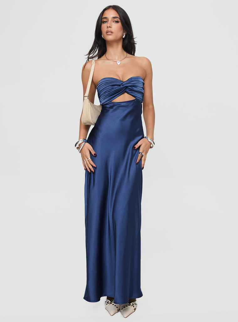 Faviola Strapless Maxi Dress Blue has a rating of 4.3 stars based on 37 reviews.