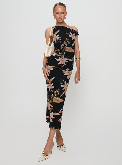 Goldrush Maxi Dress Black Floral
