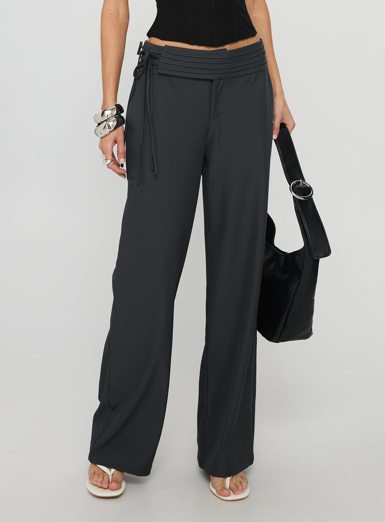 - Double button & zip closure, twin hip pockets, wide-leg, mid-rise fit