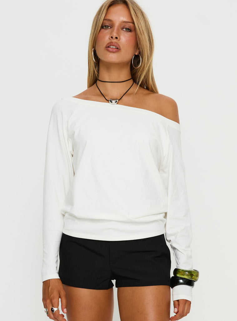 - Knit top with an off-the-shoulder neckline & long sleeves top