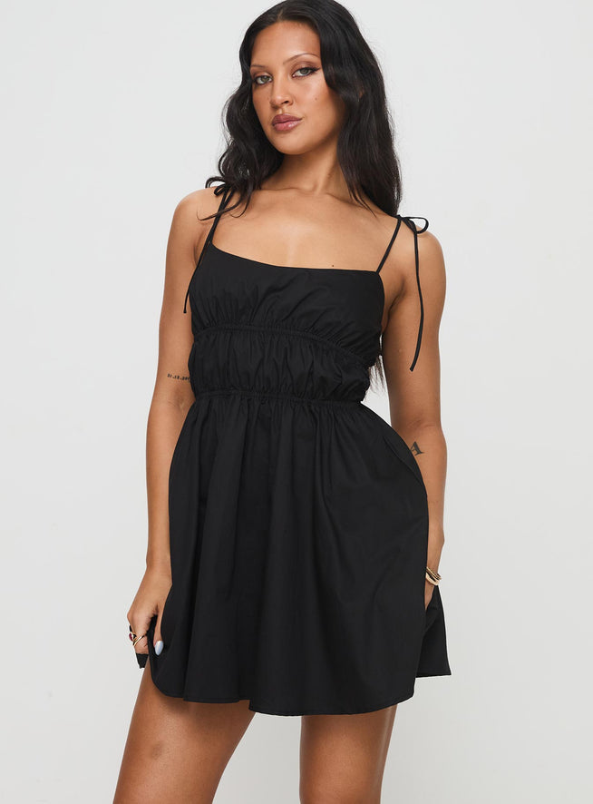 - Shirred band at bodice, pleats detail at silhouette, tie fastenings