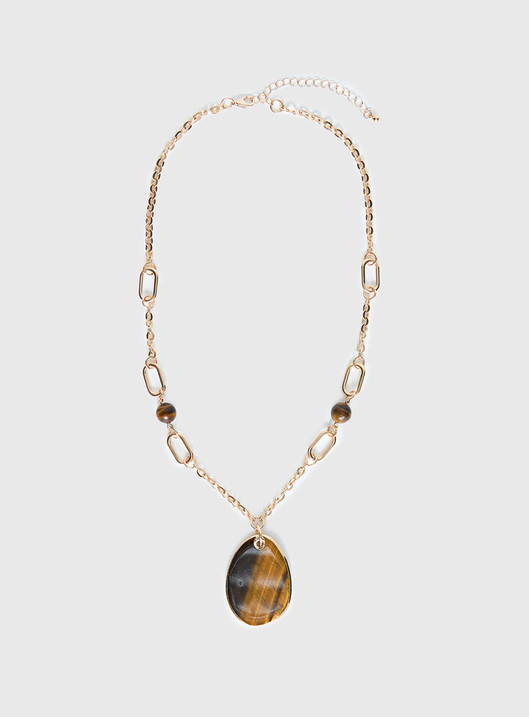 - Chain: 100% steel, Link: 100% zinc alloy, Pendant: 100% tiger-eye stone