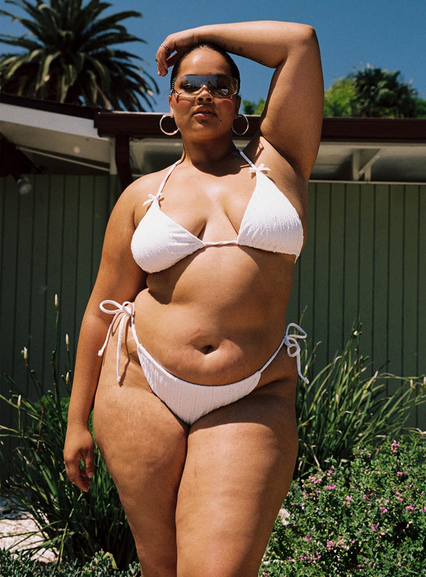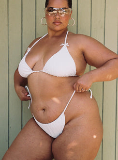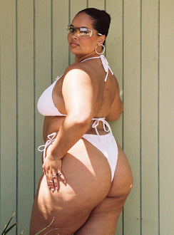 Jenner Tie Side Ruched White Anglaise Bikini Bottom Curve