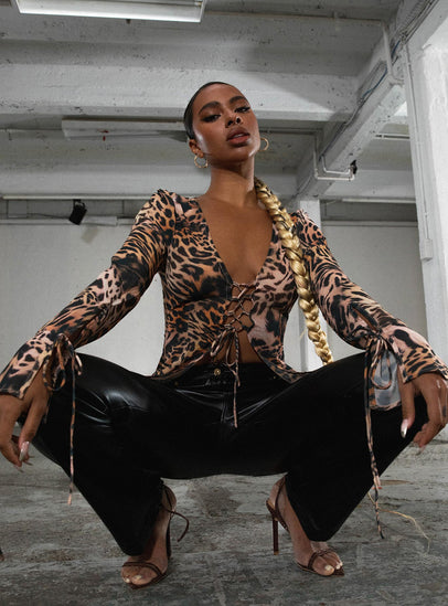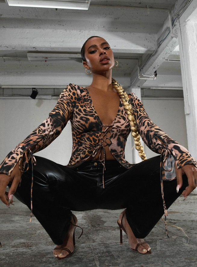 Settle Down Long Sleeve Top Pink / Brown Stripe