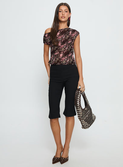 Justyna Sheer Top Off Shoulder Top Brown / Pink Floral