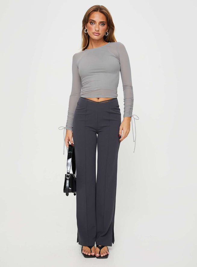 - High neckline, adjustable ruching at sleeves with tie fastening