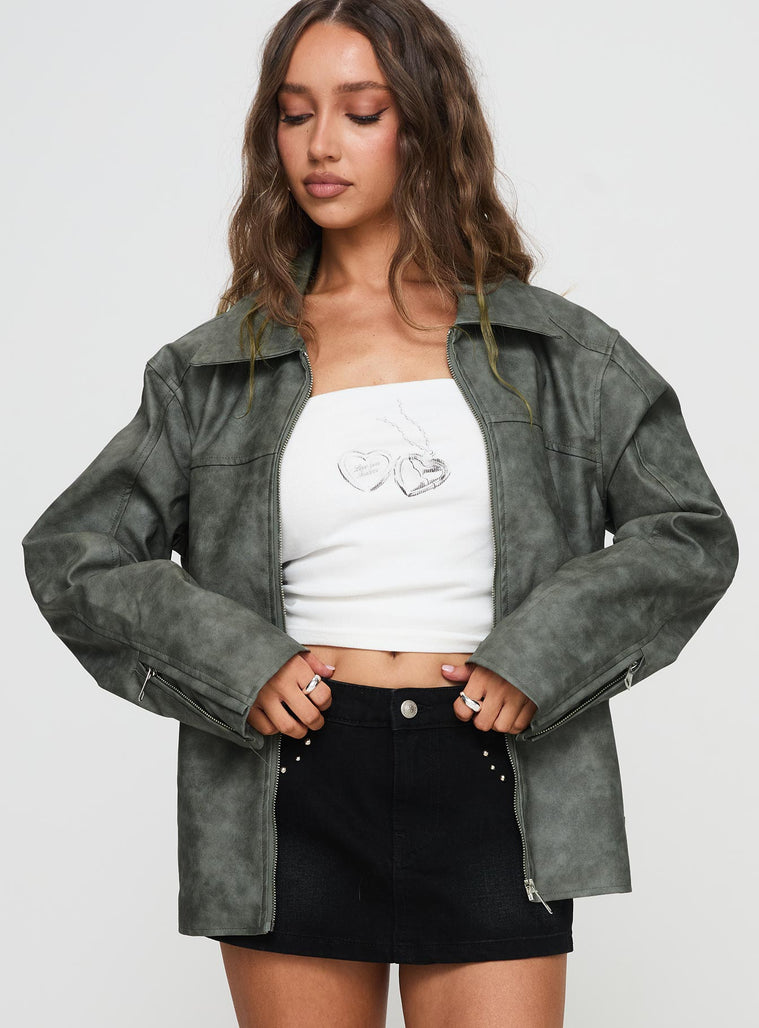 - Classic collar, zip-up closure, twin hip pockets, buckle side hem detail, drop shoulders