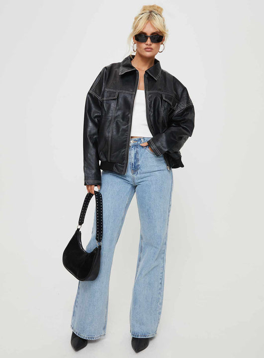 Kingsley Contrast Stitch Pu Jacket Black has a rating of 4.6 stars based on 73 reviews.