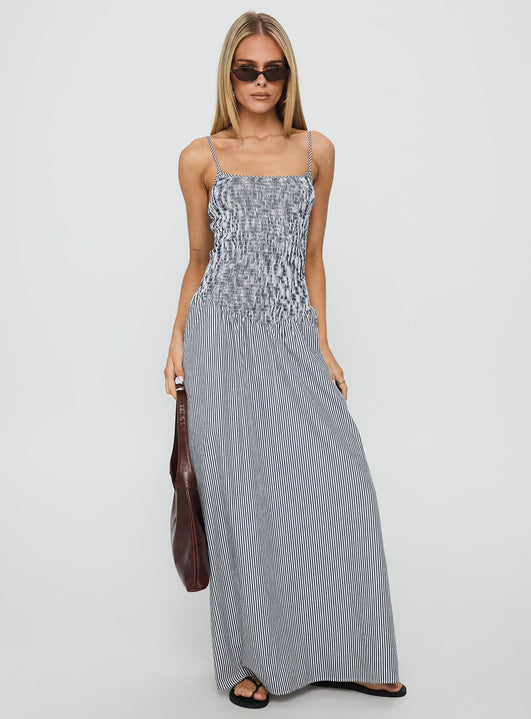 Kosie shirred maxi dress blue stripe
