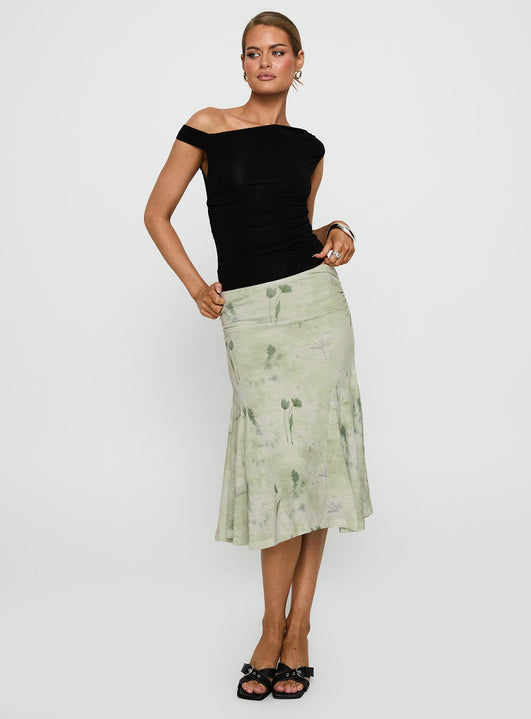 Lewish low rise midi skirt green floral
