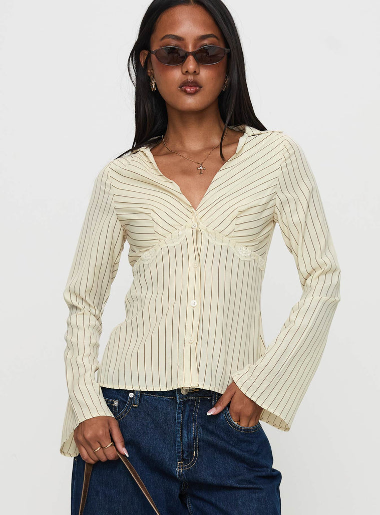 Life Begins Long Sleeve Lace Trim Top Cream Stripe has a rating of 4 stars based on 22 reviews.