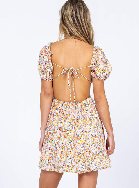 back view of model wearing Princess Polly Lillian Mini Dress Multi Floral