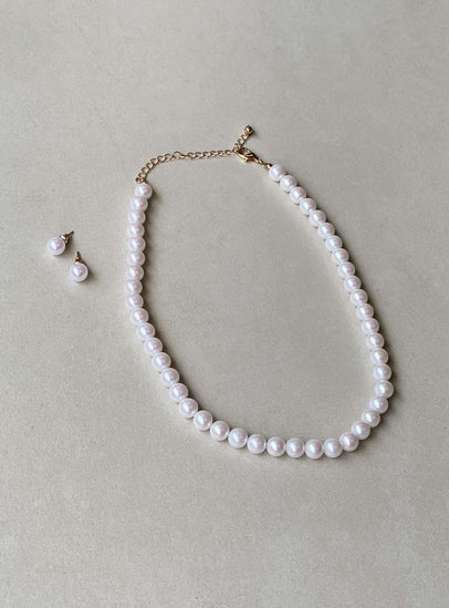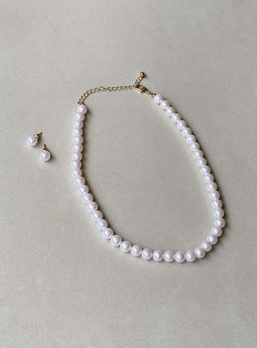 Necklace and earring pack Faux pearl earrings Stud fastening Necklace Gold-toned Lobster clasp fastening