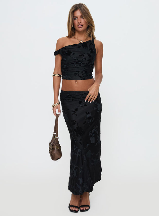 - One shoulder, twist strap detail, ruched, crop fit, maxi skirt bottoms, elasticated waistband, low-rise fit