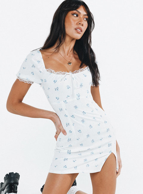 Love lies mini dress white / blue floral