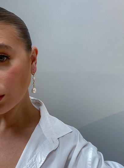 Lutana Pearl Earrings Gold / White has a rating of 4.8 stars based on 4 reviews.