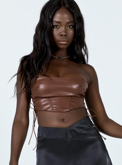 Maddox PU Strapless Top Brown has a rating of 5 stars based on 1 reviews.