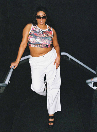 side view of model wearing Princess Polly Main Stage Tank Top Multi Curve