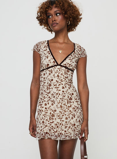 Melva mini dress stem flower brown