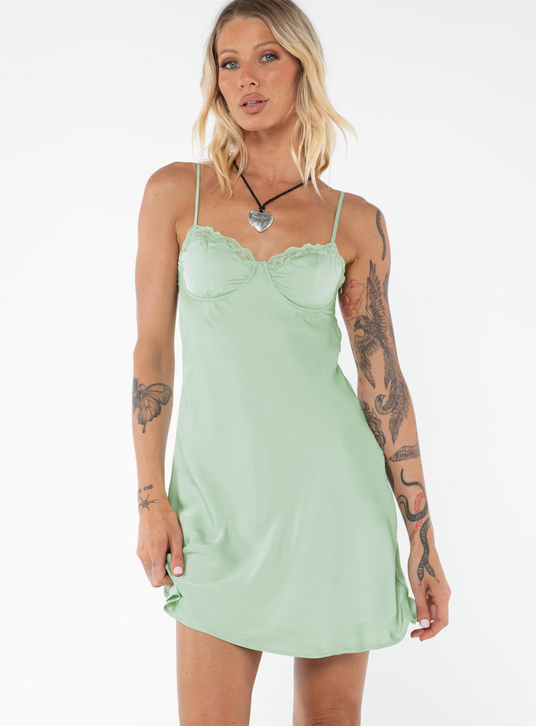 Moniz Mini Dress Sage Tall has a rating of 4 stars based on 6 reviews.