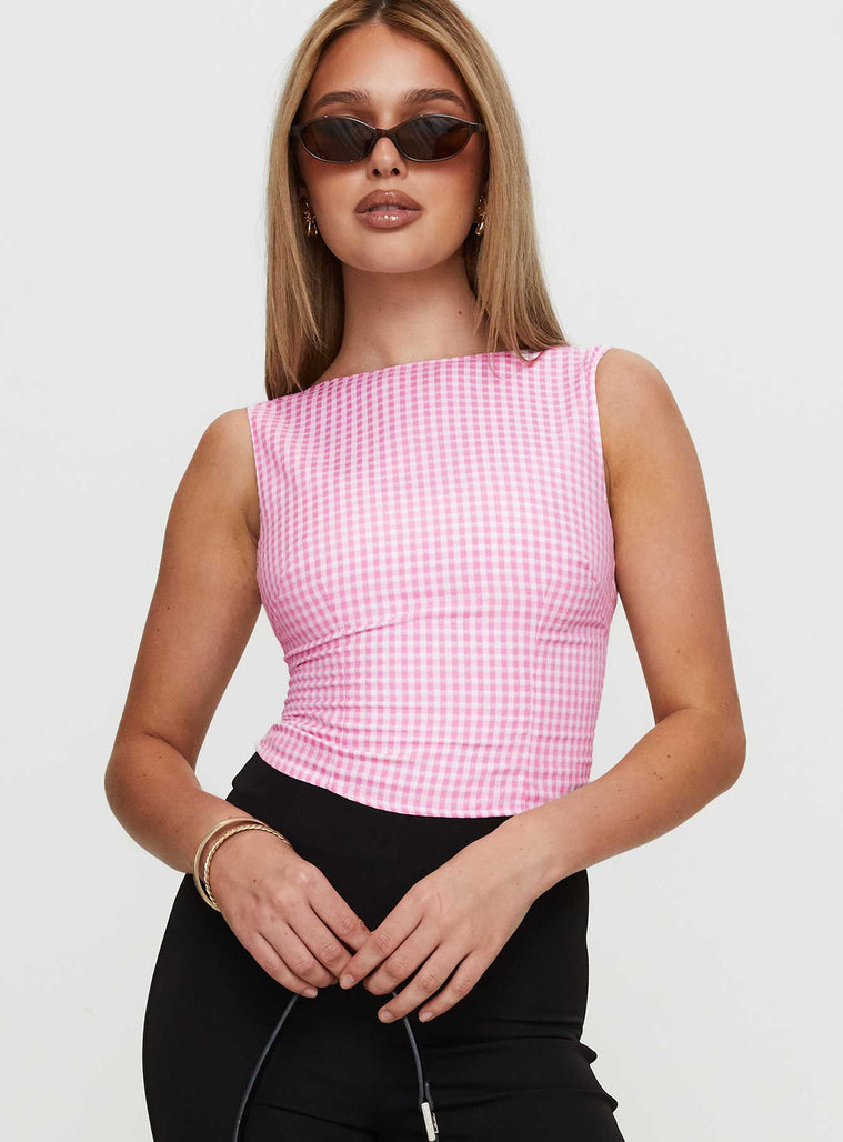 Monterrey backless bow detail top pink gingham