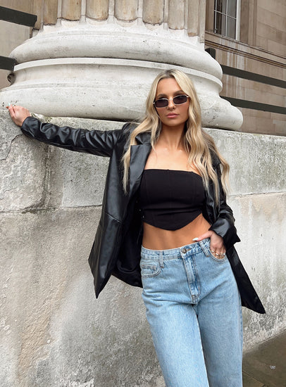 Morrison Faux Leather Blazer Black has a rating of 4.7 stars based on 50 reviews.