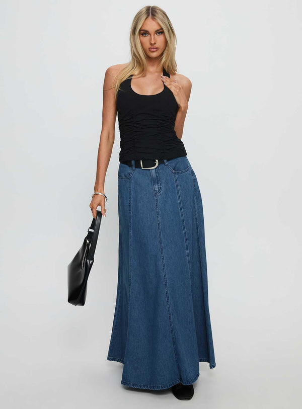 - Scooped neckline, ruched detail, invisible zip fastening at side, adjustable halter straps, slim-fit