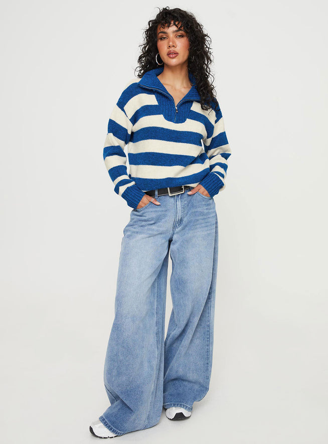 Neena Quarter Zip Sweater Blue / Cream has a rating of 4.3 stars based on 4 reviews.