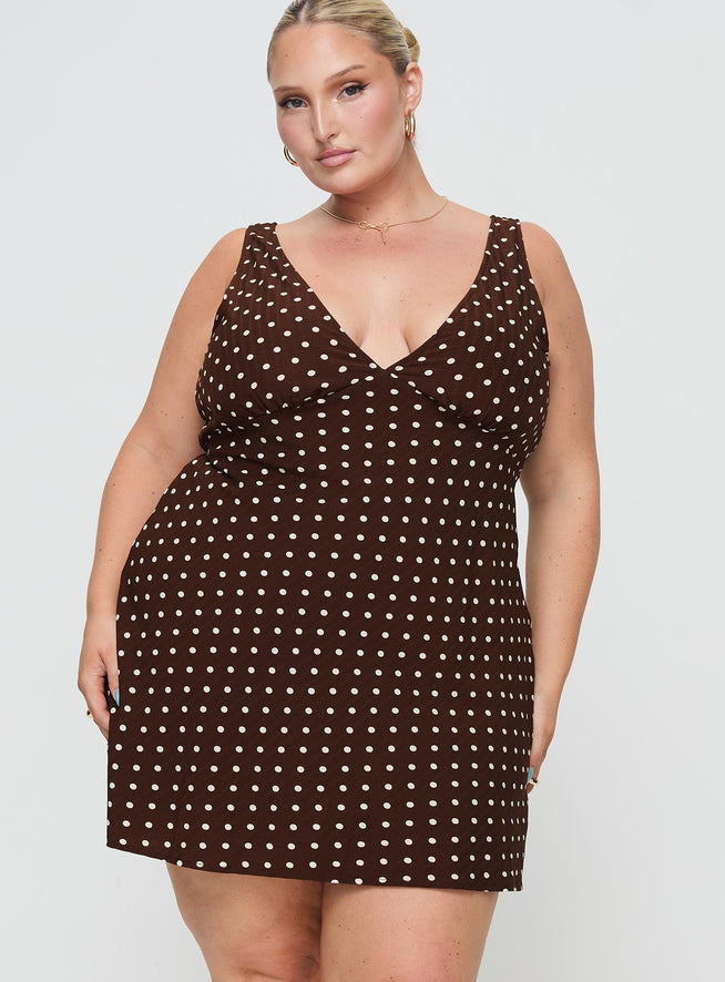 Nellie mini dress brown polka dot curve
