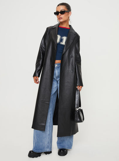 Only For Tonight Faux Leather Trench Coat Black has a rating of 5 stars based on 13 reviews.